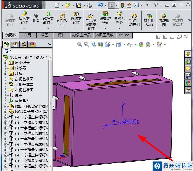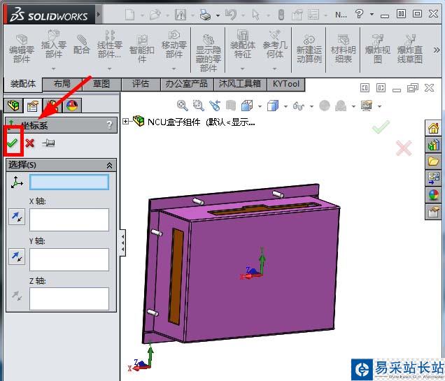 3、裝配體和零件體的坐標系就顯示出來了,如圖