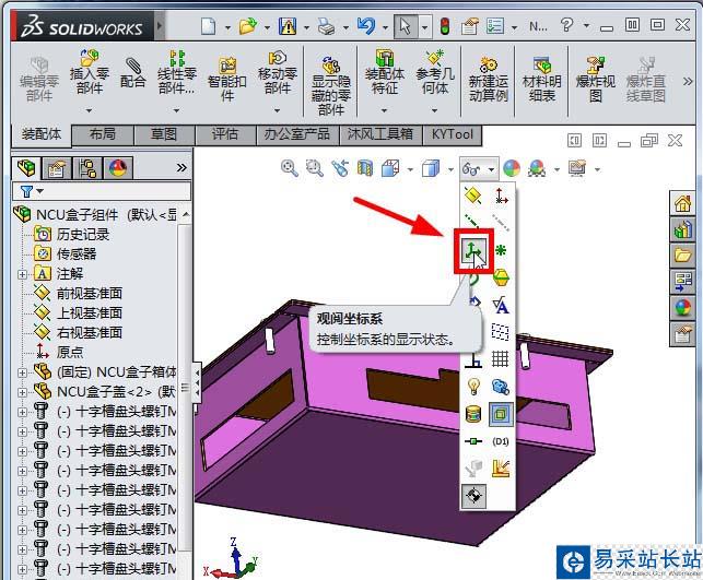 solidworks怎么在裝配體上顯示坐標系?下面我們就來看看坐標系的兩種顯示方法。