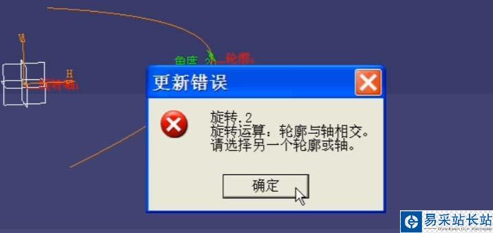 7、點選旋轉軸也不可以選擇與草繪平面垂直的軸線,否則會出現不能選擇的錯誤界面。