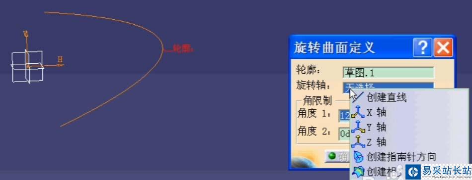 2、點選旋轉曲面按鈕可以看到旋轉按鈕界面,但我們需要先制作旋轉所用輪廓