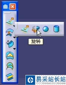 1、打開CATIA軟件,選擇創成式曲面設計。選擇曲面工具欄中的拉伸曲面下面的下拉箭頭,可以看到旋轉曲面按鈕