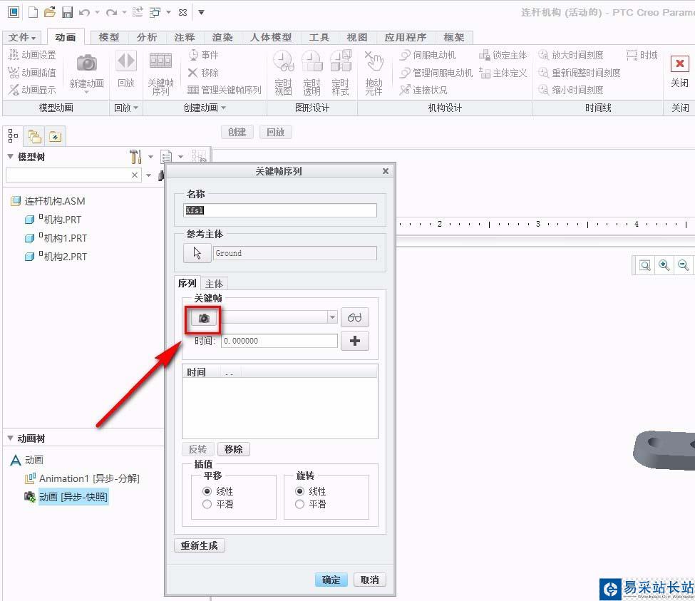 快照一中模型向快照二中模型位置的變化路徑是creo軟件自己生成的,無法更改。