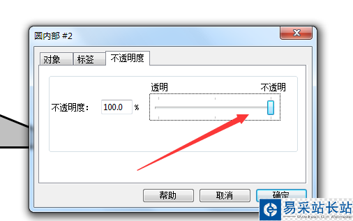 6、選中圓的內部,右擊,選擇屬性,單擊不透明度的標簽,設置不透明度為100%,確定。