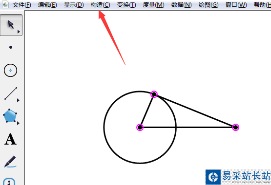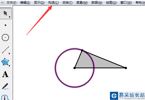 1、我要跟大家交流的例子是把一個直角三角形內部和圓的外部公共部分區域用陰影表示出來。選中三角形三個頂點。