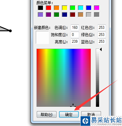 5、單擊色板,把顏色設置為白色,確定。這樣還不行,發現扇形顏色是白色和灰色疊加的結果。