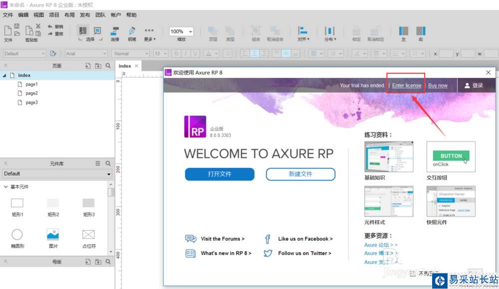 1、在打開時(shí)有個(gè)歡迎頁面,點(diǎn)擊 “Enter license”,其中文意思為輸入產(chǎn)品號。如下圖