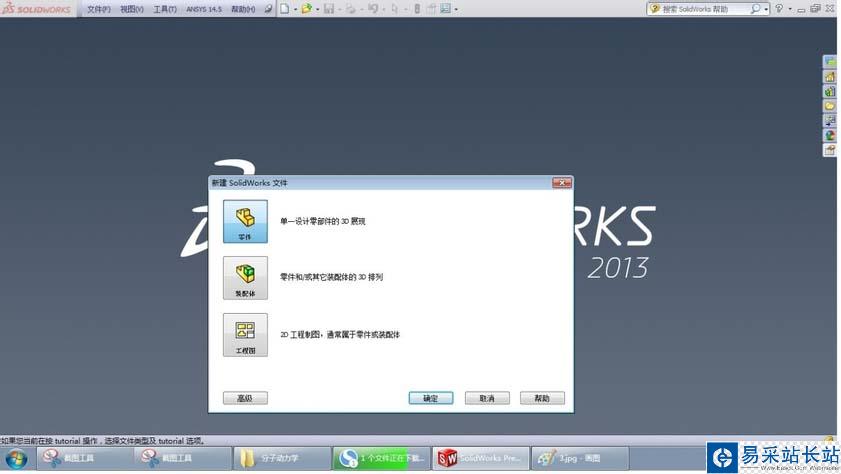 2、單擊左上角”新建“命令,然后選擇“零件”確定。