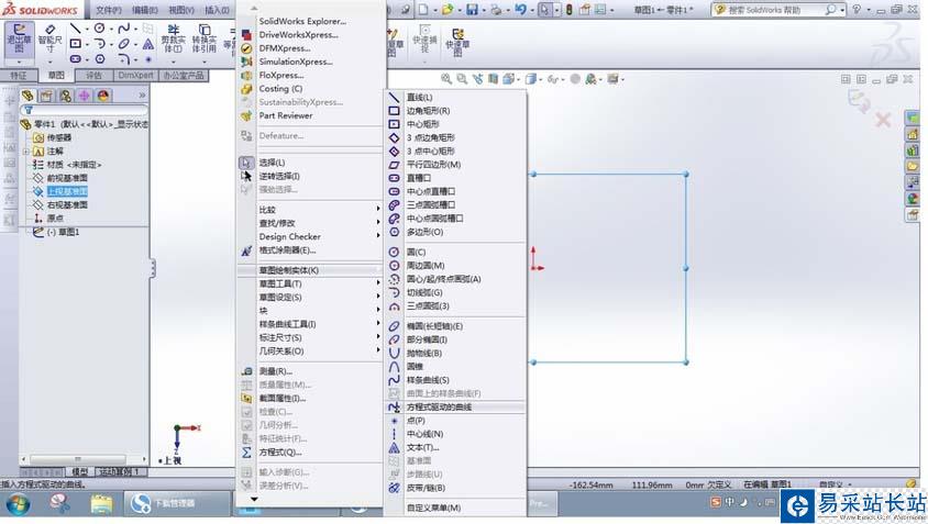 4、左鍵單擊“工具”選項,選擇“草圖繪制實體”,然后選擇“方程式驅動的曲線”。