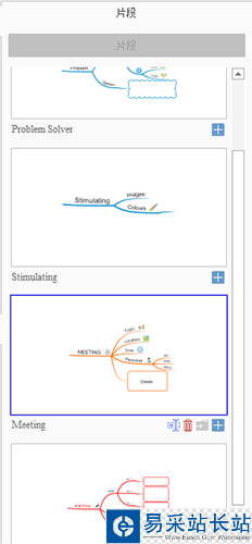 5、點擊重命名,我們可以修改該片段的名稱;點擊刪除,可以刪除該片段;點擊添加片段,就可以把該片段添加到我們的思維導圖中。