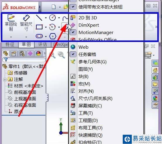 在用solidworks進行三維建模設計時,經常需要調出各個設計工具欄,這里告訴最簡單,快捷,方便的調出方法。筆者使用的軟件為SolidWorks 2013 x64 Edition,在零件模式下調出(裝配模式和工程圖模式中也一樣)。