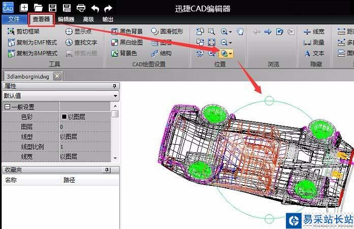 4、在查看器菜單欄中的位置工具中,選擇三維導航工具,就可以實現對CAD三維圖隨意拖動,來改變視角。