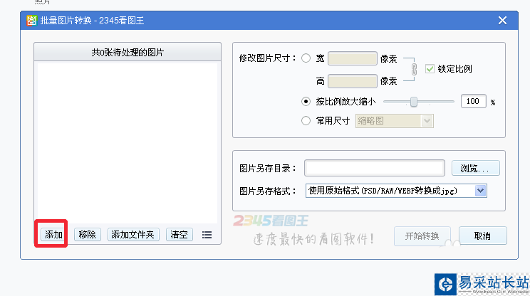 4、直接來到批量批量圖片轉換的主頁面,我點擊下邊的添加