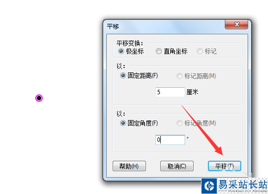 2、選擇平移選項,這里我要畫一條5cm長的線段。