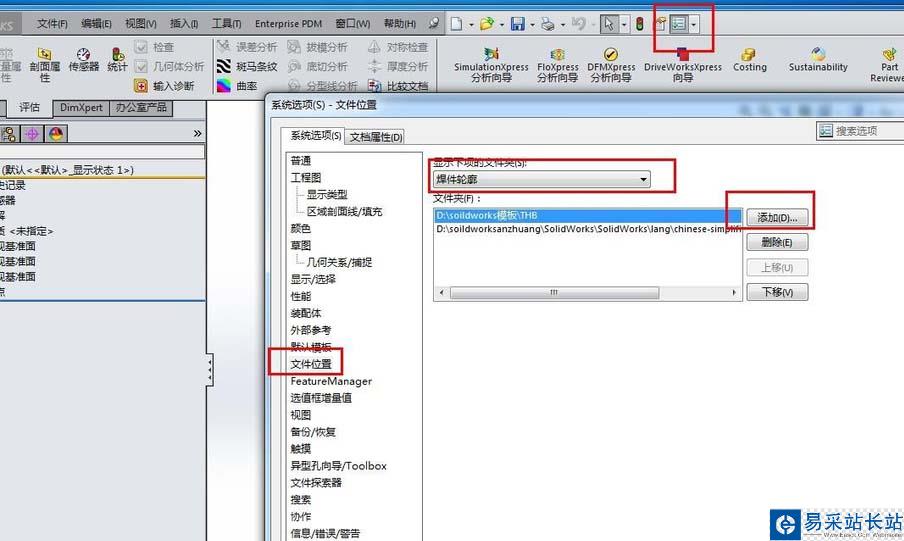 2、設置焊接輪廓文件夾:選項/文件位置/焊件輪廓/選擇建好的文件夾