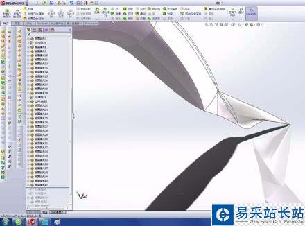 4、前鰭簡單的用一個閉合的樣條曲線(前圓后細扁)和另外兩條開環的曲線,用邊界曲面去生成光滑的曲面,這里要事先在第一個3D草圖里先規劃好