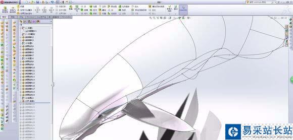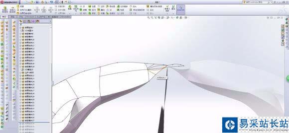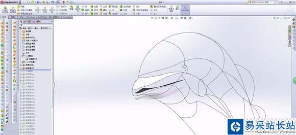 5、接下來補好腹部的曲面和尾部的面,由于海豚的尾部不是圓形的,而且腹部與尾部有明顯的分斷點,這里簡單的在原3D草圖里分割好就行了