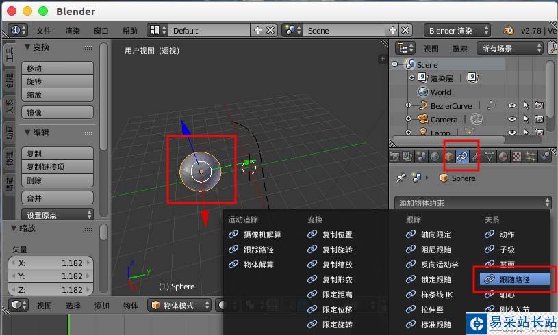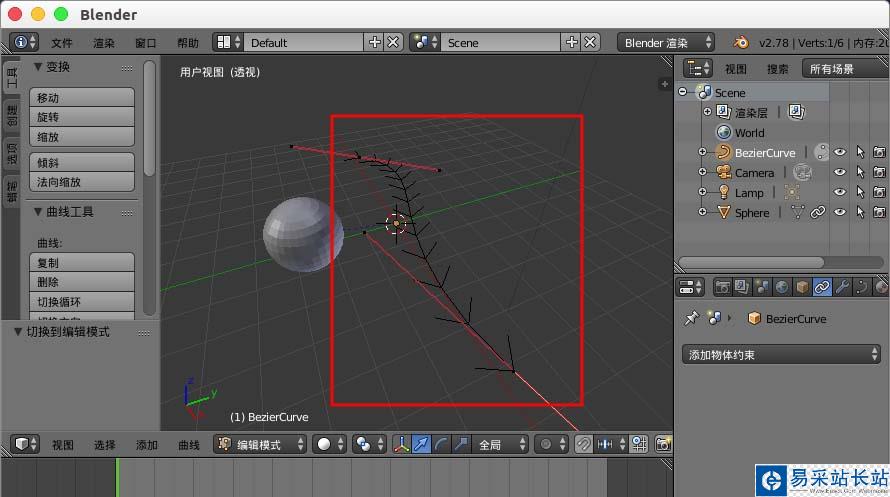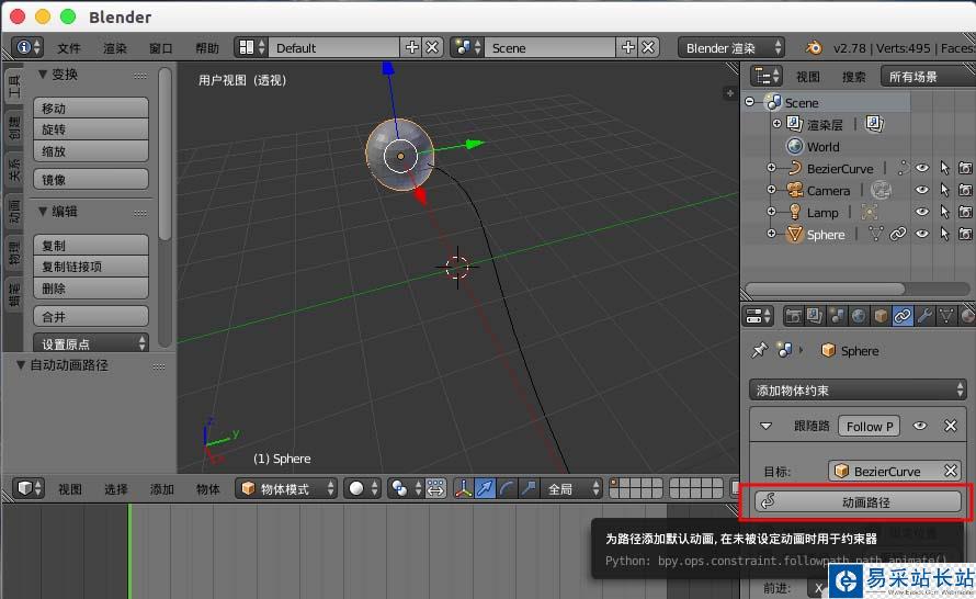 要制作物體跟隨曲線的路徑移動,可以通過blender中的約束功能,把物體約束在曲線上,就可以生成我們需要的曲線動畫了。