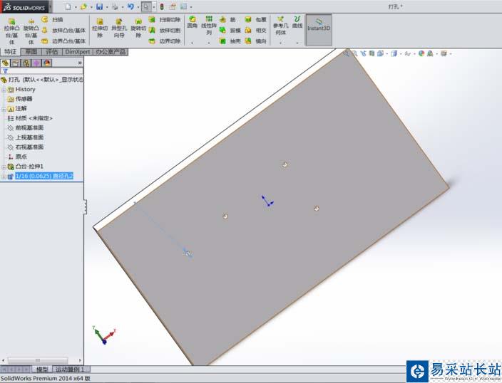 當你在用Solidworks畫3維時,是否會經常碰到需要將某個零件打孔?是否會碰到需要在某個零件上打多個孔?對于初學者來說,關于打孔可能不是很熟悉。下面與大家分享一下幾種打孔的方法。