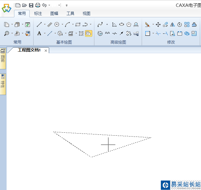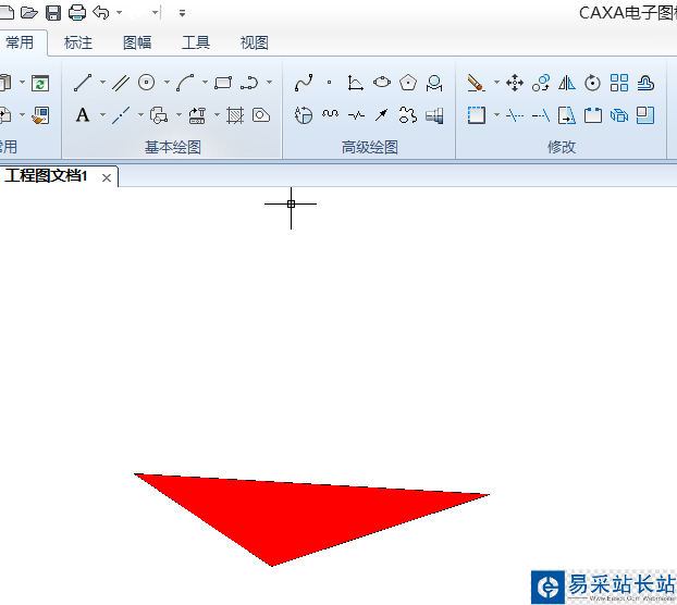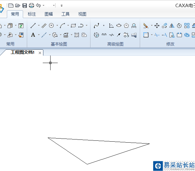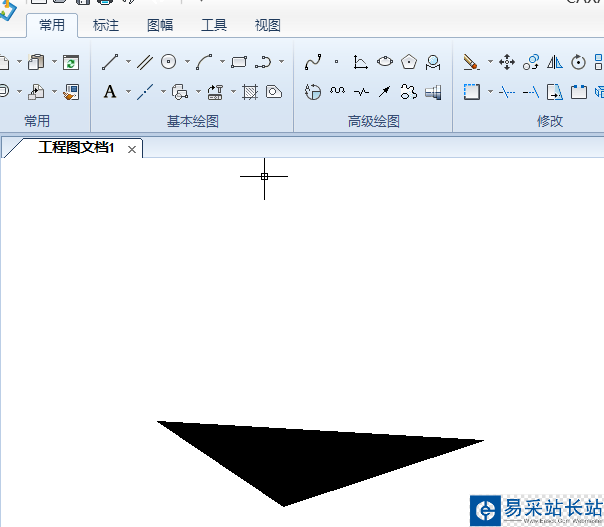 2、因為填充必須在封閉區(qū)間才能使用,這里畫一個三角形作為填充目標。