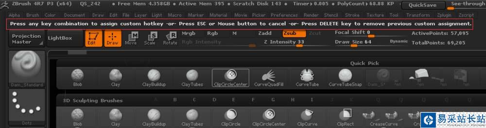 當(dāng)我們?cè)谶M(jìn)行ZBrush雕刻創(chuàng)作的時(shí)候,如果每次都在畫筆中一個(gè)一個(gè)的去選擇,是非常麻煩且費(fèi)時(shí)的,使用快捷鍵進(jìn)行操作,從而達(dá)到提高操作速度的目的。這里給大家介紹在ZBrush 4R7中如何設(shè)置筆刷快捷鍵。