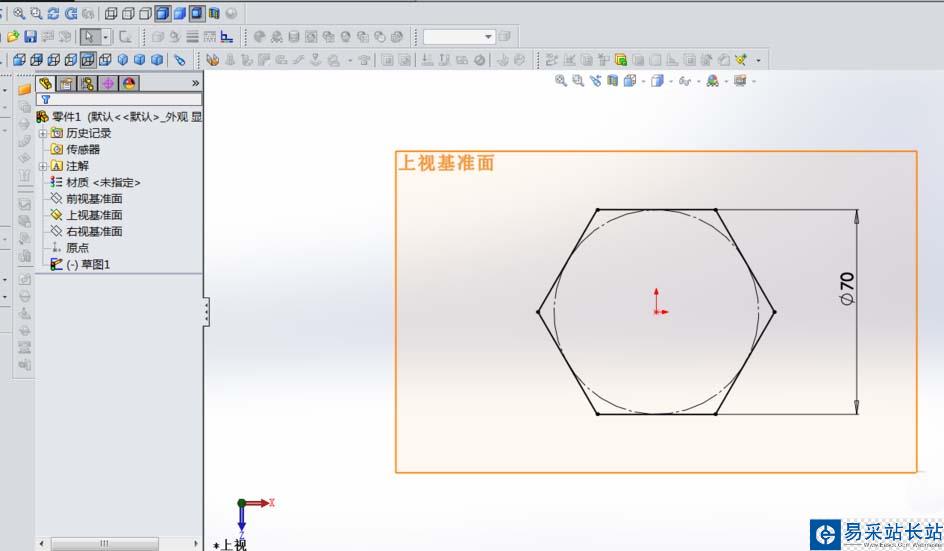 3、選一個基準面,做你需要畫的零件草圖,如下圖