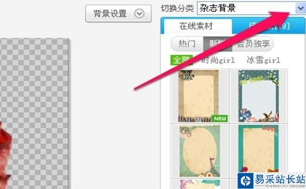 9、在右側(cè)選擇背景的分類,也可以點擊左下角的“更換背景”來換成自己的背景圖片