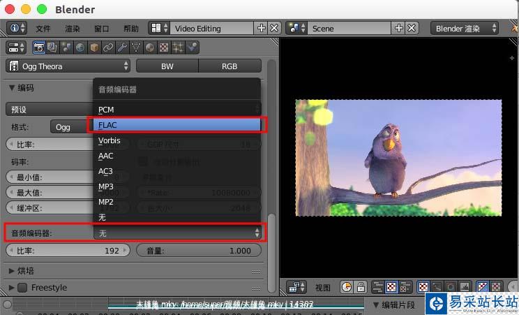 6、既然要導出視頻,當然需要選擇導出格式,選擇默認的“PNG”改為“視頻格式”,像MPEG、Ogg等。