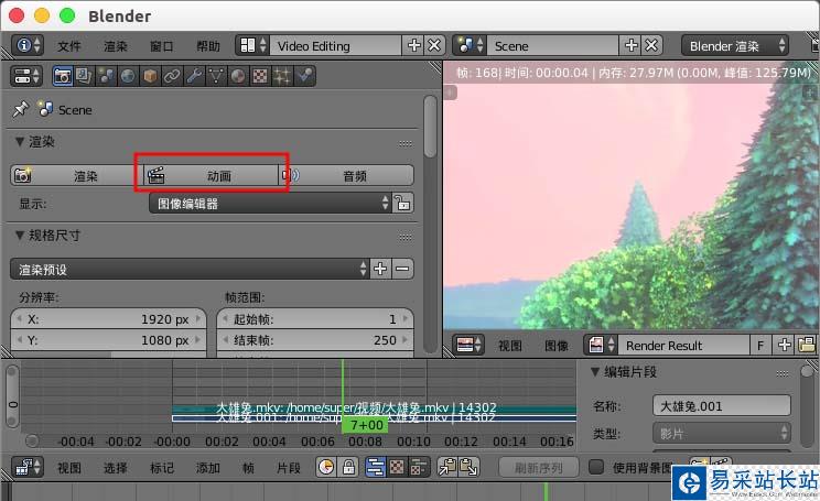 使用blender進行視頻裁剪編輯后,想要導出的話,需要在屬性中設置視頻相關(guān)的信息,然后才可以導出。