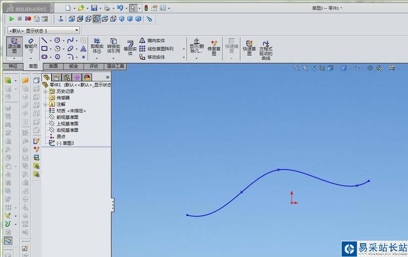 2、在任意基準(zhǔn)面上繪制草圖,用樣條線勾一條曲線
