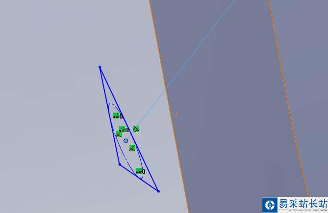 4、再做一個拉伸切除的輪廓草圖,如圖所示