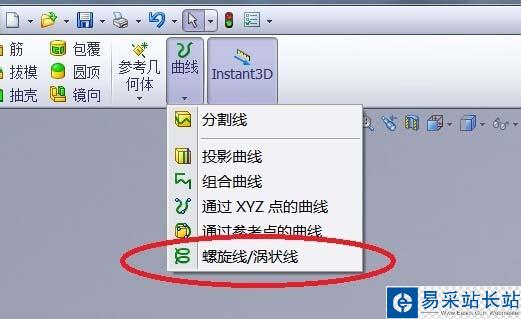 2、貼著需要生成滾花的面,做一條螺旋線。首先找到 螺旋線命令