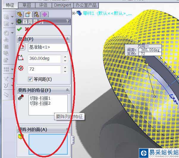 solidworks中沒有直接生成滾花的命令,所以只能通過間接的方法生成滾花,接下來小編通過用拉伸切除命令和圓周陣列命令來生成滾花。