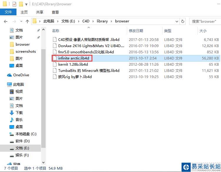 3、打開解壓出來的文件夾,我們可以看到一個.lib4d格式的文件,一般預設文件都是XXXX.lib4d這樣的格式,所以,這個文件便是預設文件。