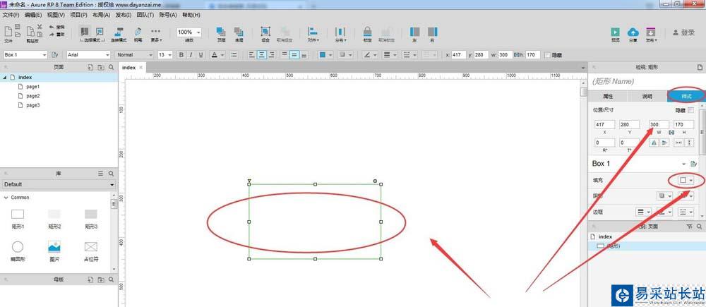 2、選中需要設置顏色的元件,在樣式中找到填充;