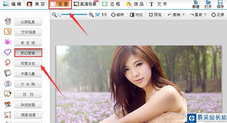 5、在該界面內(nèi)找到場景選項,并在場景里找到可愛女生選項,如圖所示: