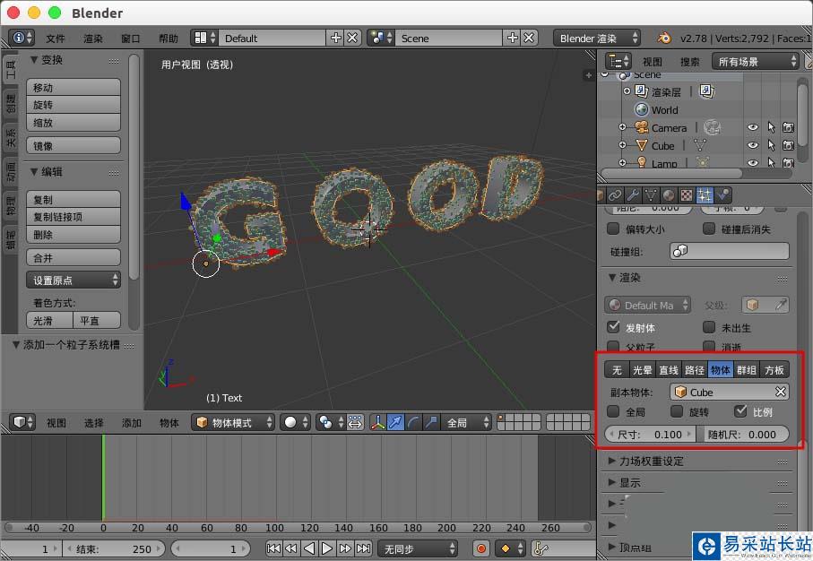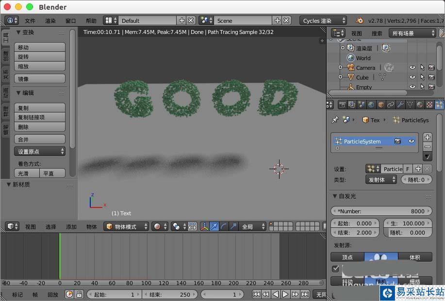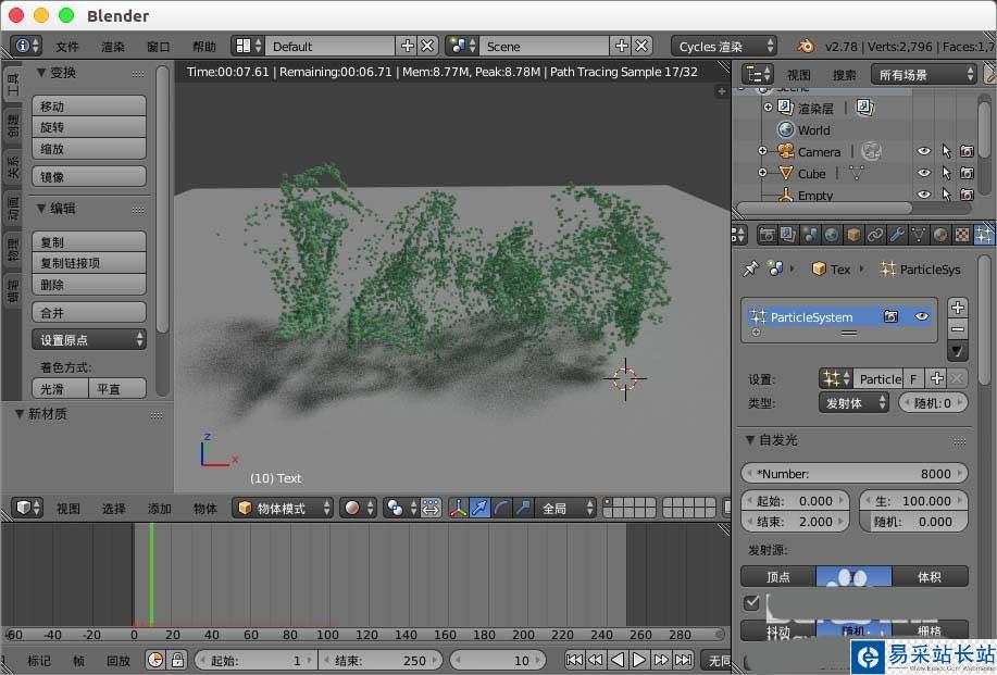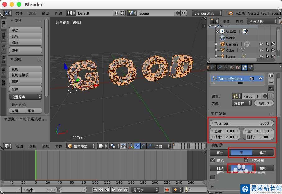 blender制作文字變碎塊吹散開,其實是利用粒子系統,然后通過添加力場對粒子施加各種力完成最終效果。