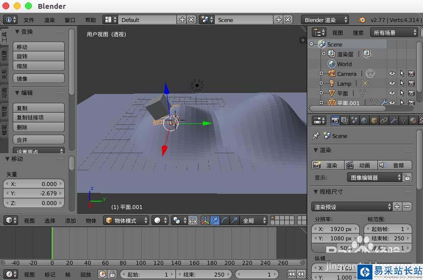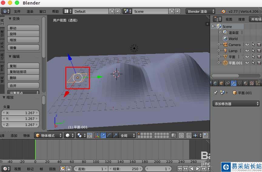 5、現在我們移動平面,平面是貼著地面的網格移動的。