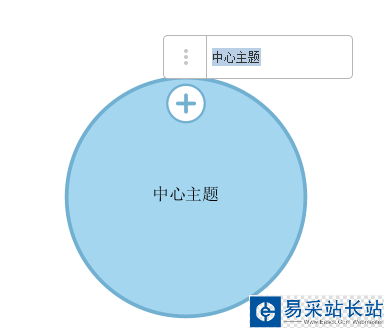 2、輻射導圖默認狀態如下圖,我們可以輸入中心思想的名稱,然后點擊+開始添加節點(雙擊可以焦近該節點)。