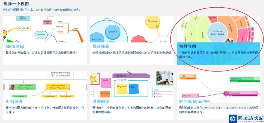 1、打開iMindMap11后,在新建菜單下找到【輻射導圖】視圖。