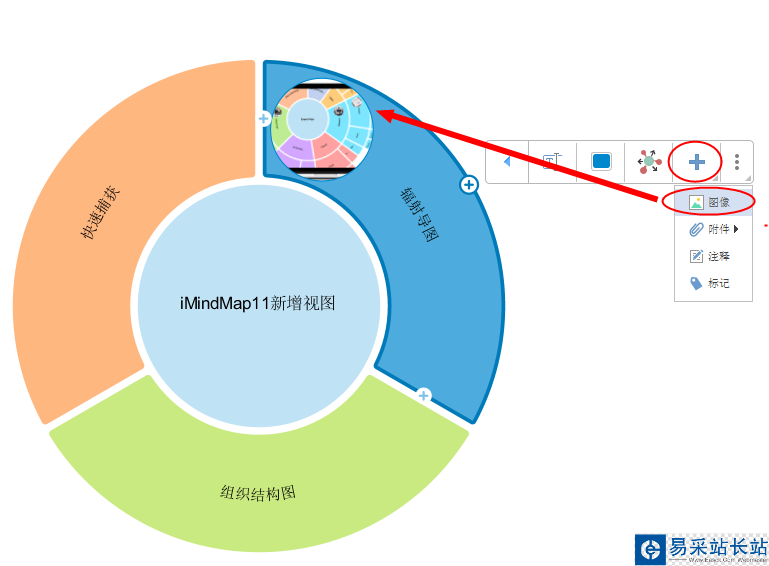 4、以輻射導圖這一節點為例,我們可以試著插入一個圖片。