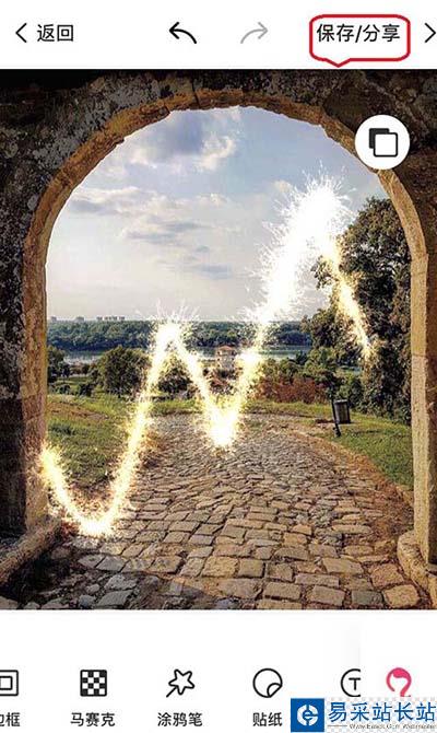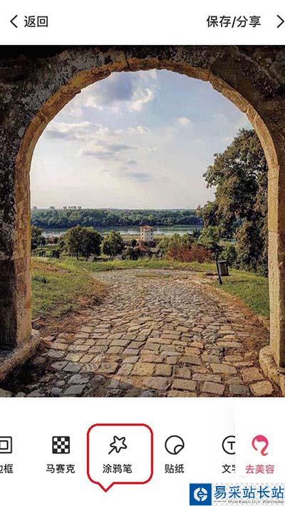 7、點擊右上角“保存/分享”,即可將打上涂鴉的照片保存至手機相冊。