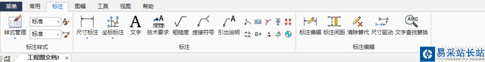 4、從最上面的主菜單欄中來找到標注選項,打開了標注就可以看到焊接符號,這里的焊接符號非常的詳細,可以供我們使用,如圖就是焊接符號的操作界面