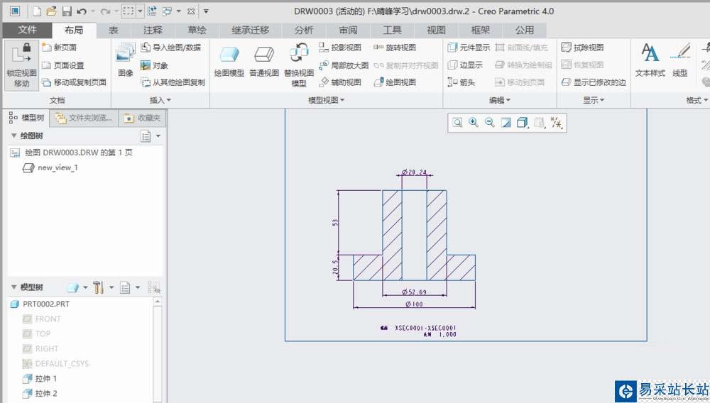 1、打開creo4.0軟件,打開一個工程圖文件。