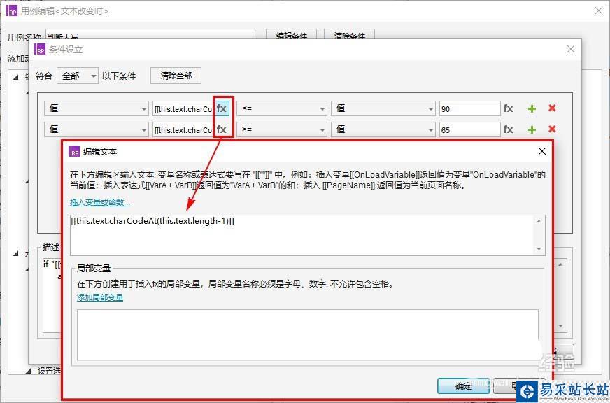 4、布局完成后,就是針對“文本框”的“文本改變時”做相應的驗證動作設置,這里最主要用的到函數就是:charCodeAt(index),用來獲取按鍵的ASCII碼