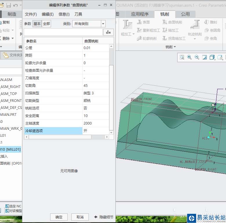 6、彈出”編輯序列參數(曲面銑削)“對話框,按下圖設置參數。