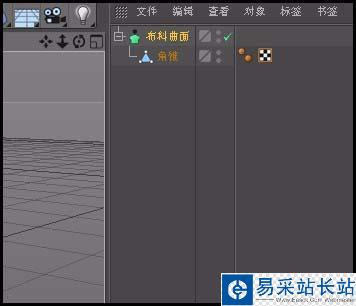 7、若你想把此平面加上厚度。那么,我們就要創建一個布料曲面對象,并且把這個平面拉到其子級。