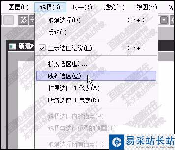 7、再點擊選擇菜單,彈出菜單中選擇:收縮選區。在彈出的對話框,設置收縮值,點擊確定。