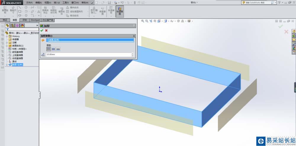 SolidWorks中想要使用厚命令創造實體,該怎么使用厚命令呢?下面我們就來詳細的教程。