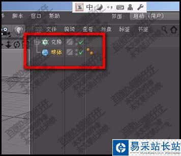 6、而在對象面板這里,已自動生成克隆對象,并且球體已自動成為克隆的子級。