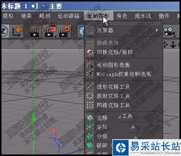 2、點開菜單欄中的運動圖形。在彈出的下拉菜單中,就看到有網格克隆工具、放射克隆工具、線性克隆工具。